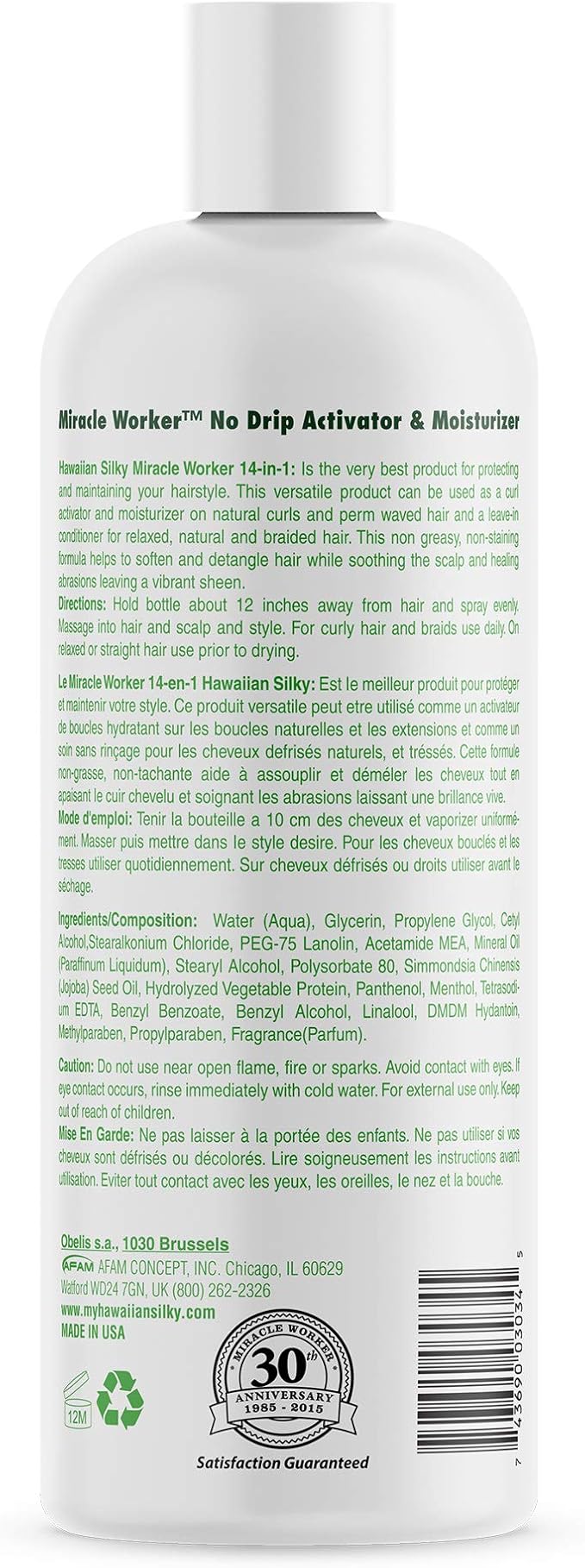 Hawaiian Silky Miracle Worker 14 in 1 is the very best product for protecting and maintaining your hairstyle. This versatile product can be used as a curl activator and moisturiser on natural curls and perm waved hair and a leave in conditioner for relaxed, natural and braided hair. This non-greasy, non-staining formula helps to soften and detangle hair while soothing the scalp and healing abrasions leaving a vibrant sheen.